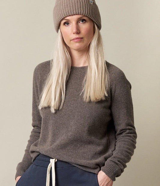 MERZB SKCN01 Lightweight Merino Wool Cashmere Silk Raglan Sweater Nut