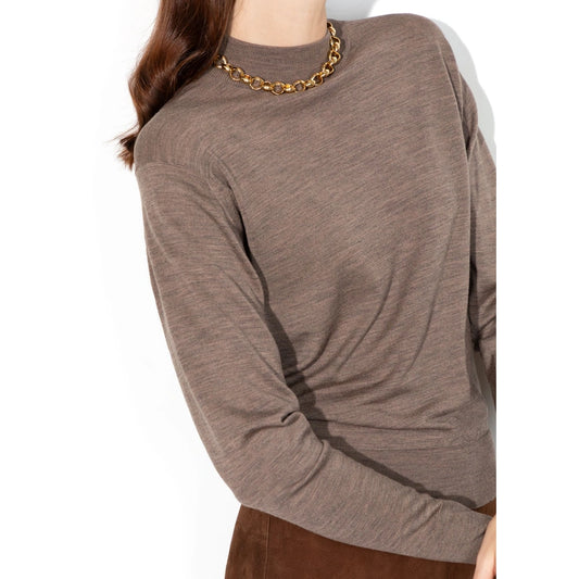 MERZB SKCN01 Lightweight Merino Wool Cashmere Silk Raglan Sweater Nut