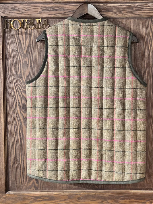 LAVENHAM x HOUSES THORNHAM Shetland Wool Tweed Quilted Gilet Sage