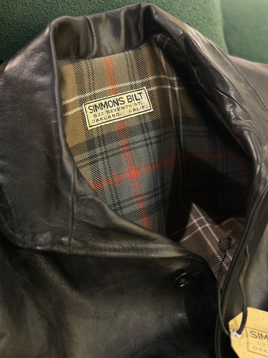 Simmons Bilt started manufacturing leather jackets in Oakland, California in the early 1900’s and ceased trading in the late 1930’s, they were regarded as one of the early pioneers in the production of leather jackets. They were also an early adopter of the new “zips closure” and used the ball & chain puller as their preference. Simmons Bilt created some great leather jackets that today are very rare to find. Through extensive research we managed to find enough information in the archives to enable us to form a template to emulate the craftsmanship employed back in the day at Simmons Bilt.